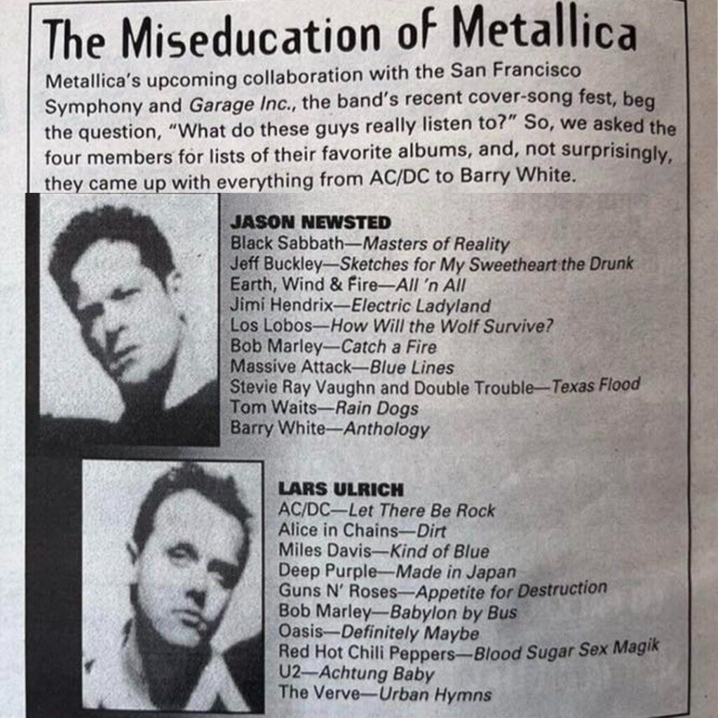 PREVIOUS NEXT NEWS / Nov 8, 2024 The Miseducation of Metallica… A reminder that good music is good music – #FlashbackFriday to Metallica bassist Jason Newsted’s callout to “How The Wolf Will Survive” on his playlist.